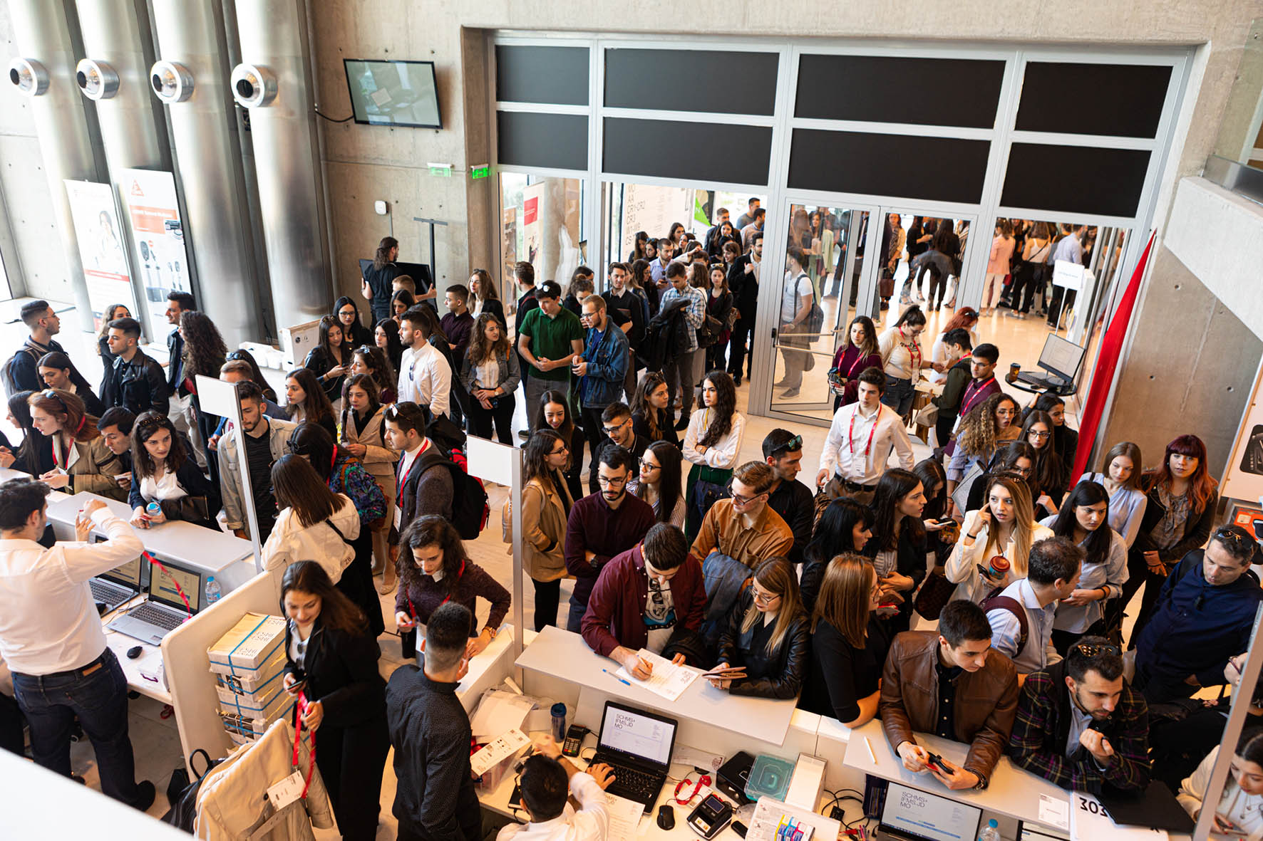 Τεράστιο ενδιαφέρον από τους φοιτητές για να παρακολουθήσουν τη live μετάδοση της 3D ρομποτικής χειρουργικής επέμβασης από τον Δρ. Κωνσταντινίδη. |