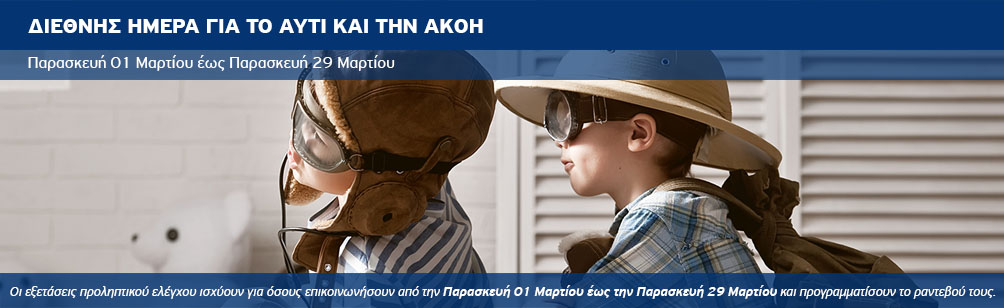 • Για παιδιά από 0-5 ετών, τυμπανομετρία και κλινική εκτίμηση στην ειδική, μειωμένη τιμή των 30 ευρώ.