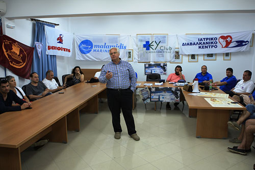 Στη φωτογραφία, στιγμιότυπο από την ομιλία του καρδιολόγου κ. Καραγκούνη, στην περσινή αποστολή της ιατρικής ομάδας του Διαβαλκανικού στον Άγιο Ευστράτιο. |