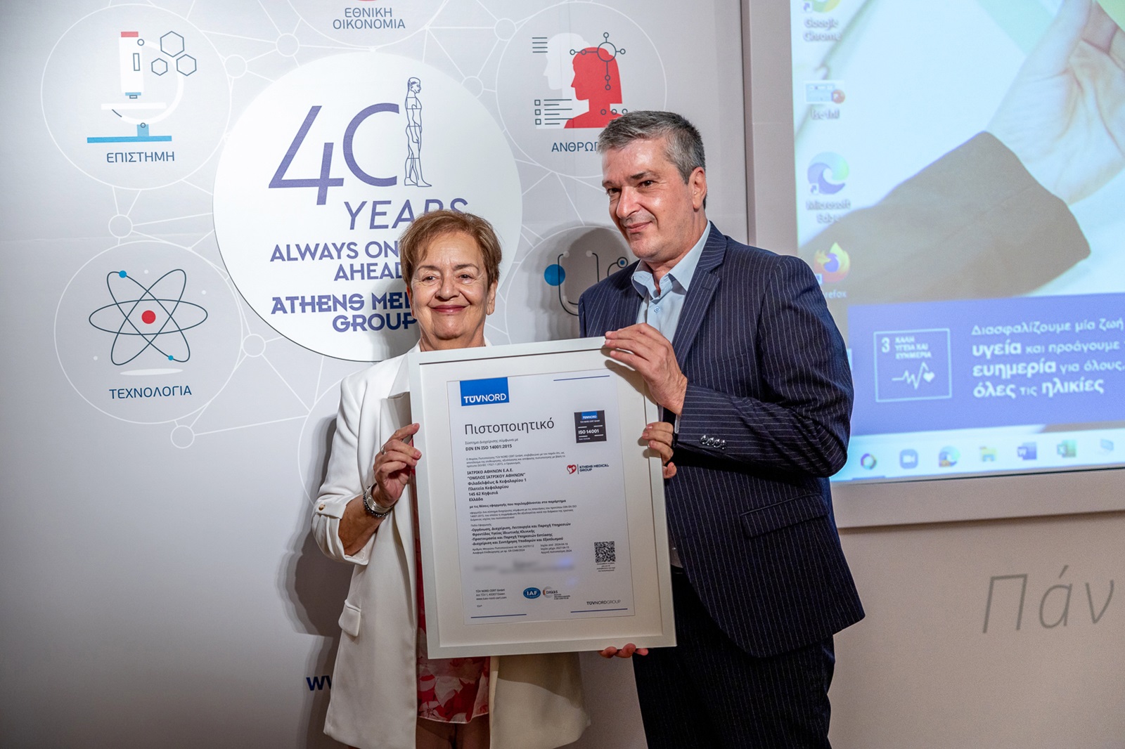 Η κα. Βασιλική Καζάζη, Διευθύνουσα Σύμβουλος της TÜV HELLAS (TÜV NORD), ανέφερε σχετικά: «Είμαστε ιδιαίτερα χαρούμενοι για την επέκταση της συνεργασία μας με τον Όμιλο Ιατρικού Αθηνών, πιστοποιώντας τα συστήματα περιβαλλοντικής διαχείρισης. Η εξασφάλιση της βιωσιμότητας είναι καθοριστική για το σύνολο των εταιρειών, αποκτά όμως ιδιαίτερη σημασία σε έναν νευραλγικό τομέα, όπως αυτόν της υγείας. Ο Όμιλος Ιατρικού Αθηνών έχει αναλάβει μια σειρά πρωτοβουλιών προς αυτή την κατεύθυνση, επιβεβαιώνοντας έμπρακτα τη δέσμευσή του, γεγονός που αποτυπώνεται και μέσω της επιτυχημένης πιστοποίησης σύμφωνα με δύο εξαιρετικά απαιτητικά πρότυπα».