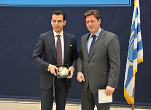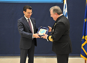 Ο Γενικός Γραμματέας της Κυβέρνησης, κ. Παναγιώτης Μπαλτάκος, στον χαιρετισμό που απηύθυνε στάθηκε στο γεγονός ότι είναι η τρίτη φορά που επισκέπτεται το Υπουργείο Ναυτιλίας και Αιγαίου για να παρευρεθεί σε τελετή δωρεάς από ιδιώτη. «Πιστεύω ότι δε θα είναι η τελευταία» σημείωσε, ενώ, παράλληλα, ανέφερε ότι το Λιμενικό Σώμα με τις 7.200 άνδρες και γυναίκες που έχει, συμβάλλει σημαντικά στην προσπάθεια που καταβάλλει η Κυβέρνηση για έξοδο της χώρας από την κρίση. «Αφενός μεν υποστηρίζει την εμπορική ναυτιλία η οποία συνεισφέρει, με ένα μεγάλο ποσοστό, στο ακαθάριστο εθνικό προϊόν, αφετέρου δε, αστυνομεύοντας τις θάλασσες μας, αποτρέπει καθημερινά την είσοδο πολλών παράνομων μεταναστών στη χώρα μας».