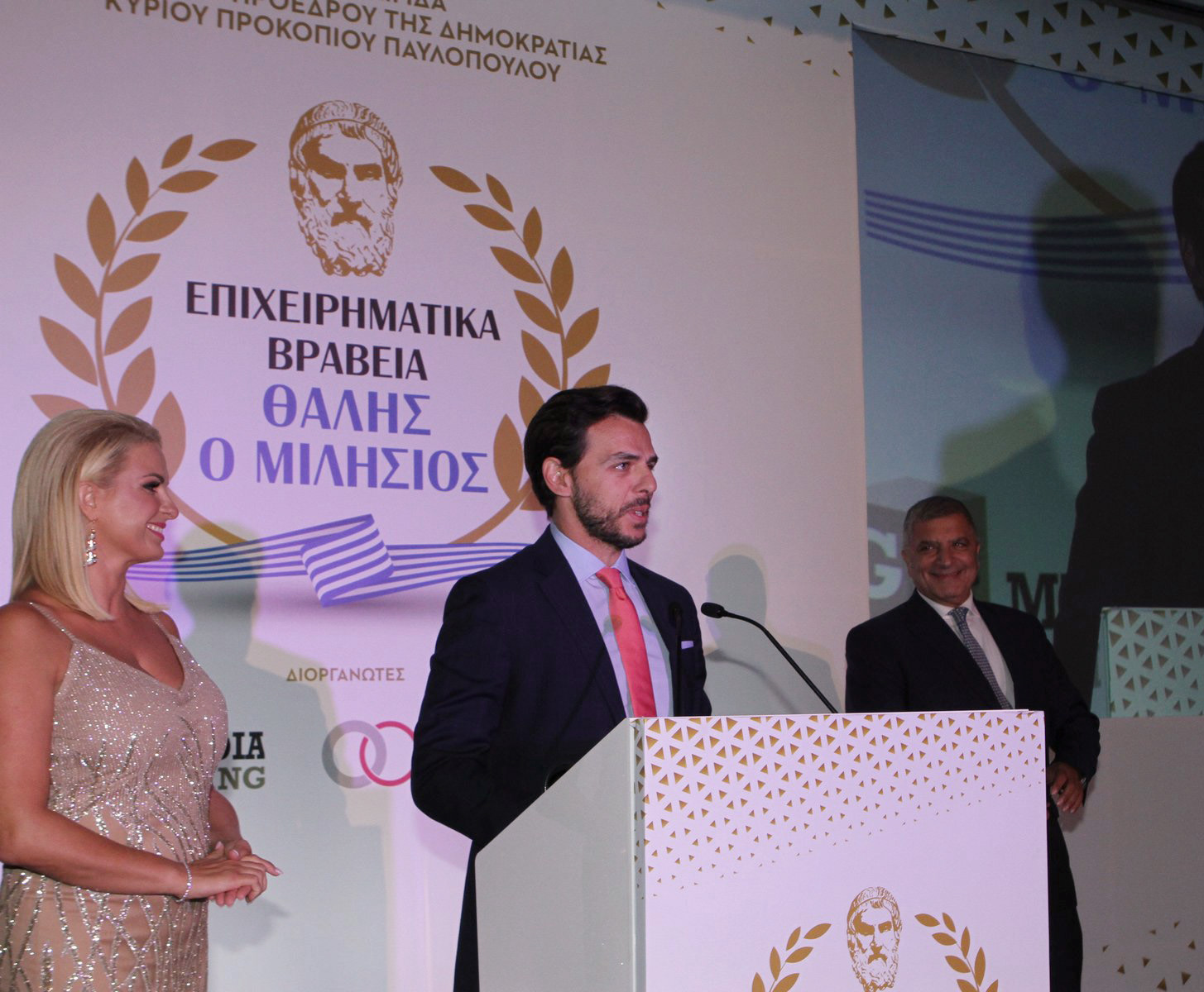 Τέλος, ο Δρ. Αποστολόπουλος, με τη θεσμική του ιδιότητα ως Πρόεδρος της Ελληνικής Ένωσης Επιχειρηματιών (ΕΕΝΕ), απηύθυνε χαιρετισμό στην έναρξη της εκδήλωσης μαζί με τους εκπροσώπους της πολιτικής και αυτοδιοικητικής ηγεσίας της χώρας. Εξήρε την πρωτοβουλία των διοργανωτών και σημείωσε πως τα βραβεία συμβάλλουν στην αναγνώριση της εξωστρέφειας, της συνεργατικότητας, της καινοτομίας και της αειφορίας στο σύγχρονο «Επιχειρείν», αξίες και κατευθύνσεις στις οποίες εστιάζει τη δράση και τις πρωτοβουλίες της και η Ελληνική Ένωση Επιχειρηματιών.